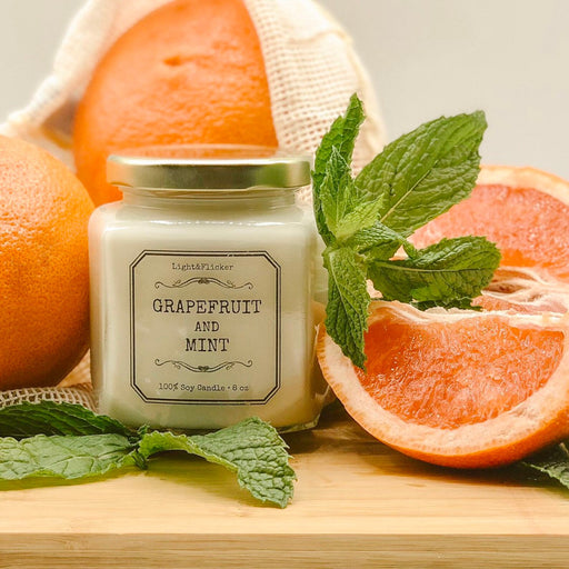Light & Flicker$28.00| /Handcrafted, double wick, 100% soy wax candle blended with phthalate-free fragrance oils. Notes of Grapefruit, Mint, AppleBurn time: 50 hours