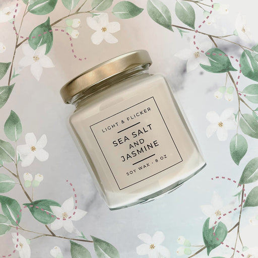 Light & Flicker$28.00| /Handcrafted, double wick, 100% soy wax candle blended with phthalate-free fragrance oils. Notes of Sea Salt, Jasmine, Freesia, Tonka Bean, AmberB...