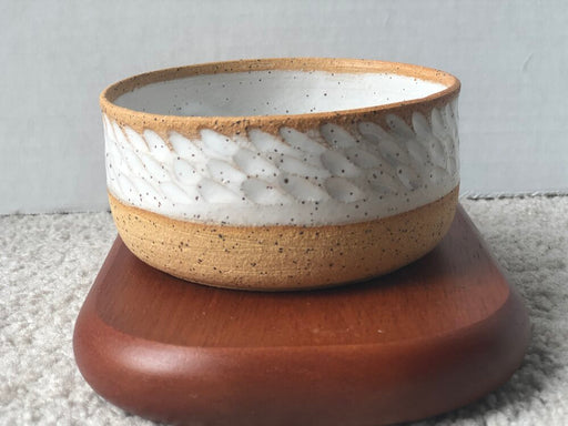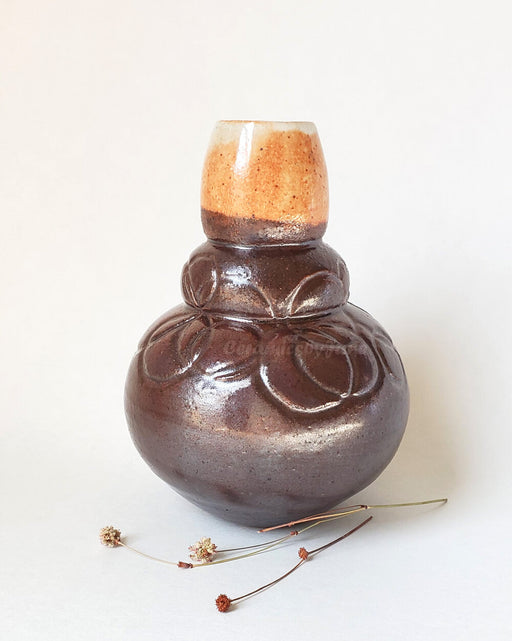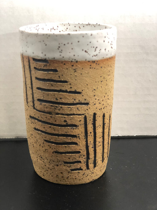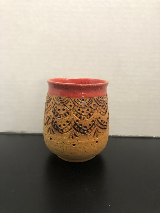 Zen Shway Studio$25.00| /This hand-built, hand-textured cover pot will hold most 2.5” liner pots. The texture is highlighted with a dark brown satin glaze with the rest of ...
