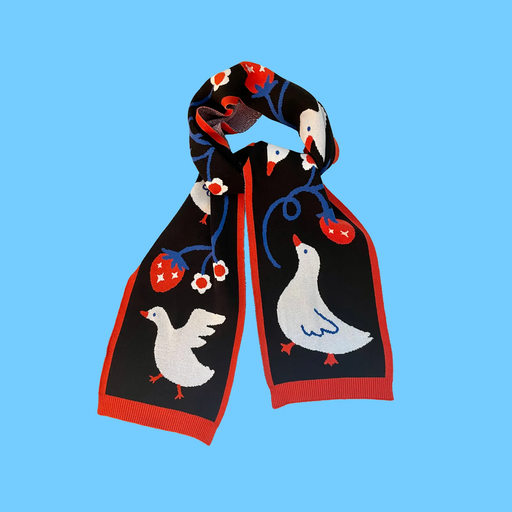 Meridrop$45.00| /This knitted scarf features a party of silly geese, frolicking amongst a strawberry field. ✦ One size, ~200cm long✦ 100% cotton ❁ Sweater details ❁...