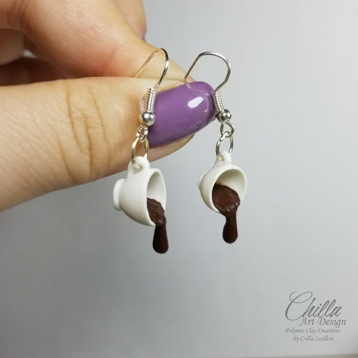 Chilla Art Design$17.00| /• Polymer clay spilling coffee earrings. Every detail is hand sculpted without using any molds. • Please allow slight variations from what shown on...