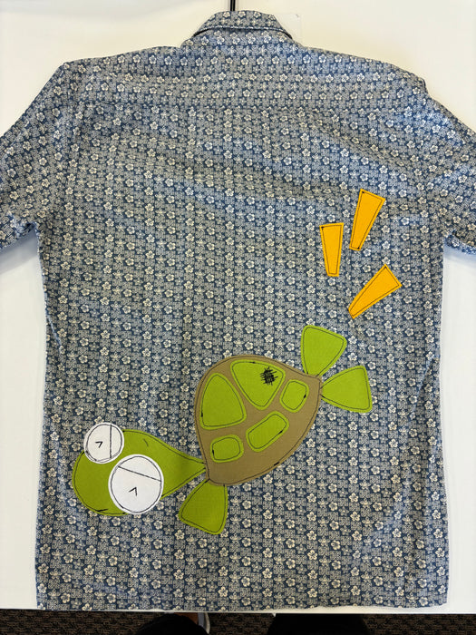 A (the) Lisa Inez raw-edged, spliced, no-waste mashup of reclaimed/deadstock materials. Unisex. Prewashed. Size: Small