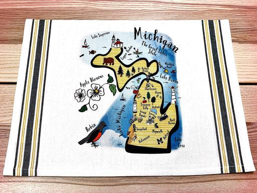 Gooseberry Designs$20.00| /18x28 inches, 100% natural cotton vintage style striped tea towel. Hanging loop sewn on upper left corner. Printed with eco-friendly water based ...