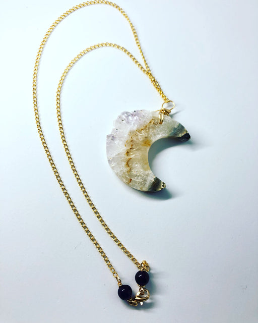 Bohemian Moon Art$30.00| /Gold plated chain with Druzy Amethyst Pendant and Crystals 🌛🌛🌛. Chain is 16” long Length of chain is also customizable. For more customized des...