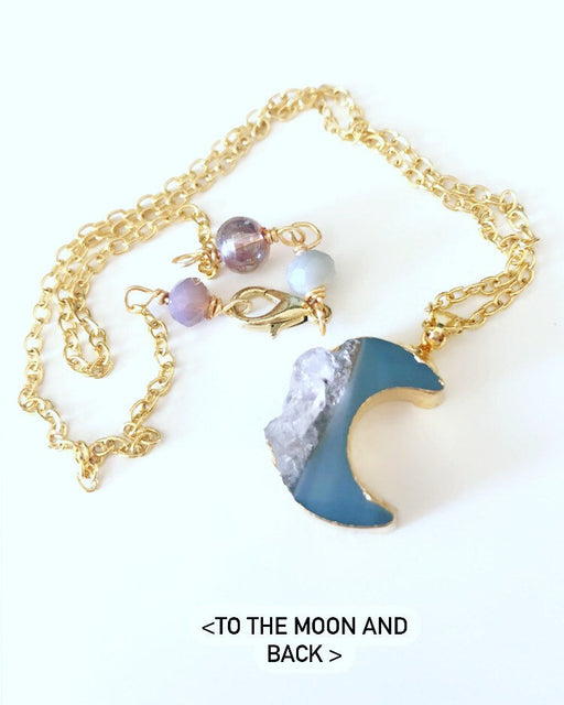 Handmade Crescent Moon Lariat Necklace // Handmade Crescent Moon Crystals Necklace