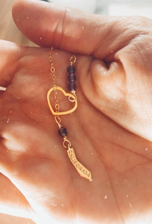 Handmade Lariat Necklace //Handmade Heart Lariat Necklace // Gemstone Heart Lariat Necklace // California Love Necklace // California State