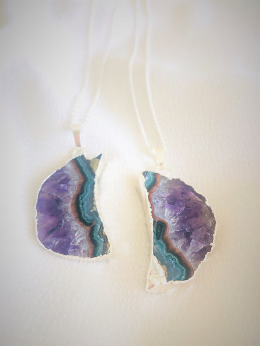 Bohemian Moon Art$38.00| /Handmade Amethyst Moon Necklace in Sterling Silver Chain. Electroplated Charm Stone Size: approx 35-40mm. Length 16". For more sizes message us.