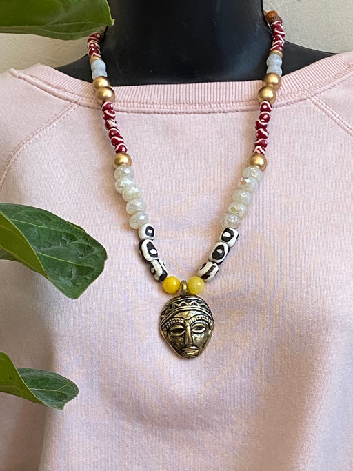 Statement necklace, gifts for her, African pendant, African bone beads, tribal necklace, boho necklace