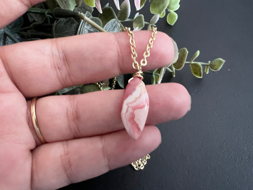 Rhodochrosite pendant , gifts for her, layering necklace, 14k gold chain, anti tarnish chain, natural stone pendant