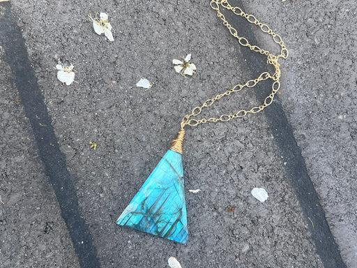 Labradorite pendant, natural gemstone, womens necklace, blue flashy necklace, large triangle pendant