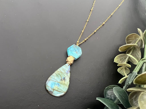 Labradorite pendant, Chrysocolla necklace, labradorite pendant, long necklace , length 18 inch