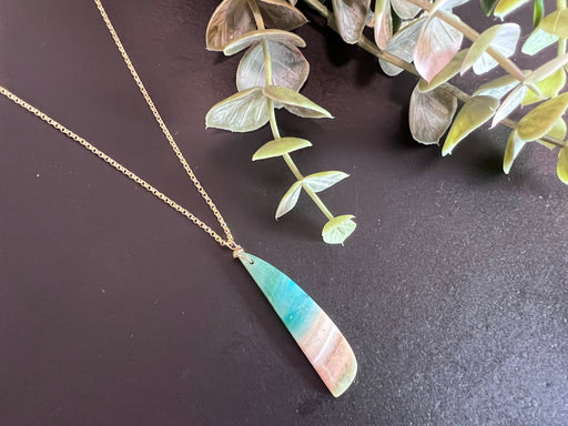 Blue opal pendant , gifts for her, layering necklace, 14k gold chain, rare stone, petrified wood opal, natural stone pendant