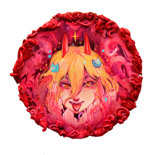 San José Made$65.00| /Quanxi from Chainsaw Man. Enamel, Acrylic, Colored Pencil. This item will not be available for pick up or shipping until July 5, 2023. Created by A...