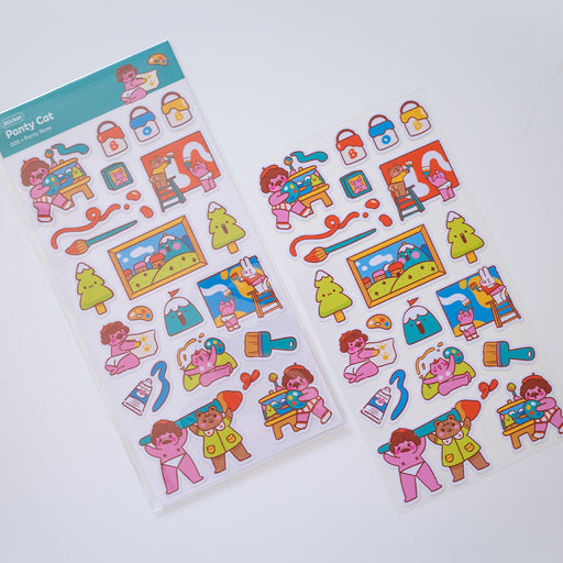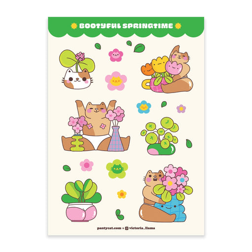 Panty Cat$6.00| /Spring Panty Cat and plants with cute little cat flowers. A6 glossy vinyl sticker sheet