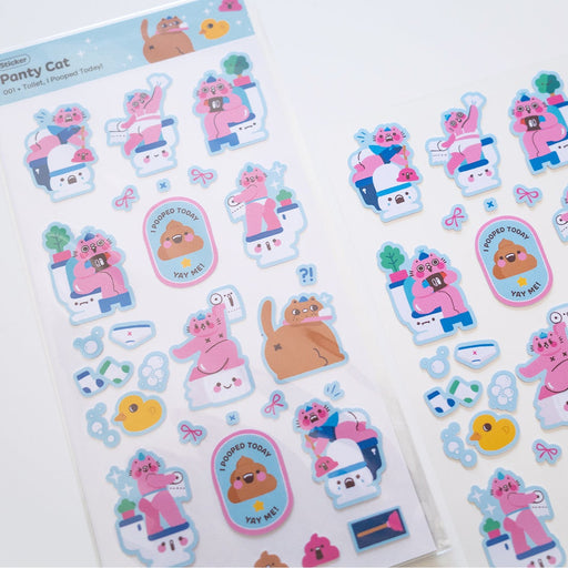 Panty Cat$6.00| /Panty Cat on the toilet with achievement badges celebrating their poops. Stickers great for journals, planners, accessories, water bottles, or your...