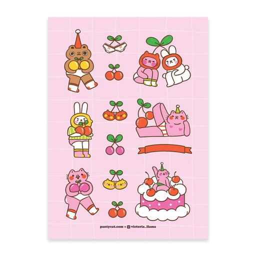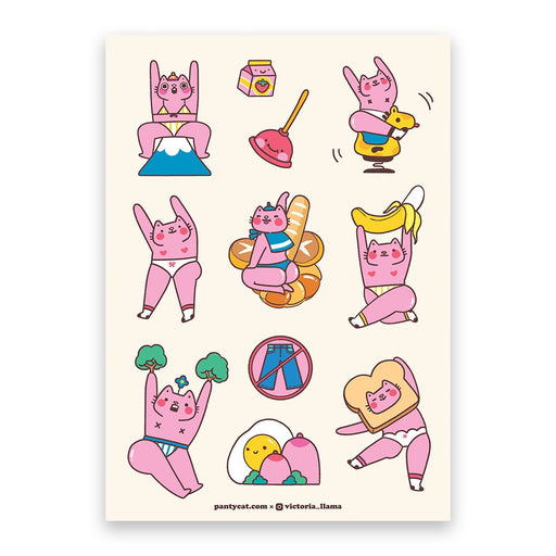 Panty Cat$6.00| /Hi, I'm Panty Cat. I'm feeling pink today. A6 glossy vinyl sticker sheet