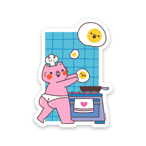 Panty Cat$4.00| /Panty Cat cooking up some eggs in the kitchen, yum! 3.5" Vinyl sticker Weather-Resistant Dishwasher friendly