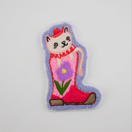 bobo design studio$12.00| /Yeehaw meets meow! This woven patch features a cowboy cat riding in style inside a floral pink boot. With vibrant embroidery and fuzzy texture, it’...