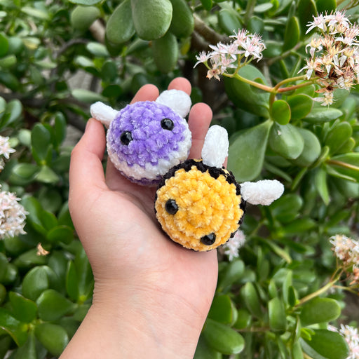 Yarn Circus$15.00| /A soft & small bee, sweet and squishy as can be! About this item:Made with Polyester Velvet Yarn, Safety Eyes, and PolyfilSize: Mini! About 1...