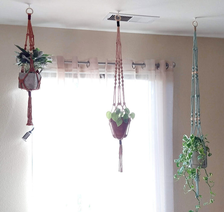 The Pickett plant hanger is here to both maximize your vertical space and give your beloved plants the light that they need! Handmade with love, each hanger features intricately coin and spiral knots with high-quality 4mm single strand cords made of 100% cotton recycled from the garment industry. The design is complimented by a natural wooden ring and beads made of birch and maple. Pickett is available in different sizes to fit your window space. If you'd like to commission a custom color, check out the "Made to Order" listing! If you're looking to hang 2 plants with one hanger to really maximize your space, check out the "Double Pickett"!