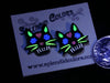 You don't have to be a childless cat lady to appreciate these sassy glow in the dark cat sugar skulls. Laser-cut black acrylic with hand-painted glow designs, 3/4-inch high. Choose yellow or blue eyes. USA-made surgical stainless posts.