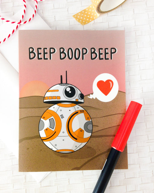 Sherry Lou Studio$5.00| /Beep Boop Beep! This punny BB-8 Star Wars greeting card is blank inside and comes with an envelope. Size: 4x25”x5.5”
