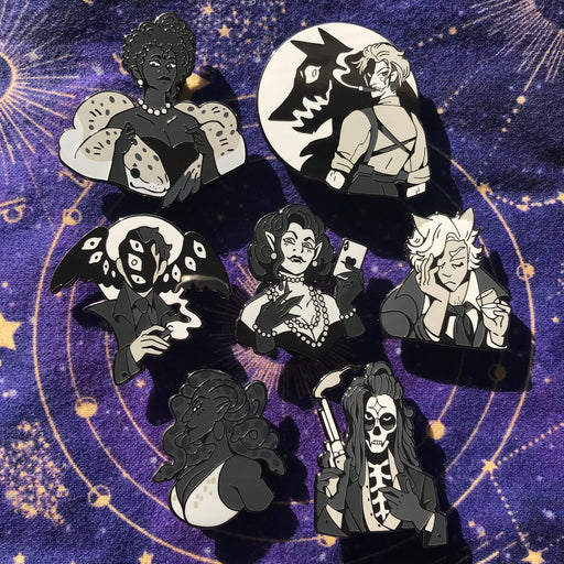 Ultra Infinite Shop$16.00| /A mini series of my original characters in a film noir style! These pins are available individually or as blind bags. Each pin has black nickel pla...