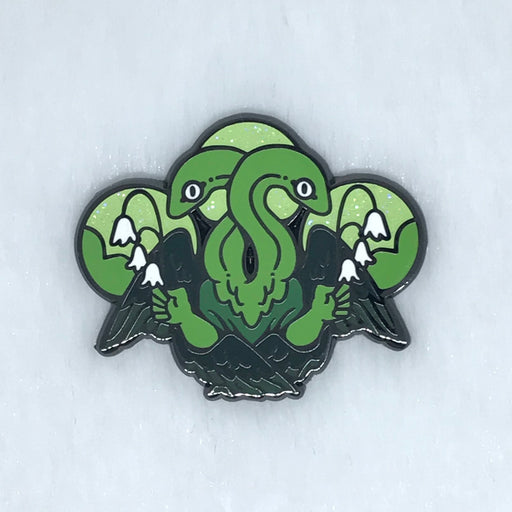 Ultra Infinite Shop$14.00| /A two-headed serpent angel holding lilies of the valley, for Aromantic pride. This pin is approximately 1.6 in (4.1 cm) on its longest side. The p...