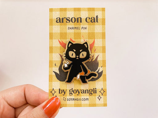 Goyangii$12.00| /Illustration features a black cat holding a molotov and lighter, ready to light some shit on fire. ✿ Size: 1.5" x 1.25" ✿ Hard Enamel Pin ✿ Soft Go...