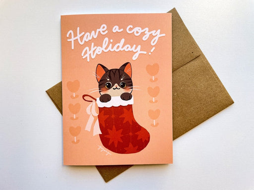 Goyangii$6.00| /Illustration features a kitty snug in a stocking wishing you "Have a Cozy Holiday!" ✿ Printed on heavy cardstock ✿ Blank inside ✿ Kraft Brown Envel...