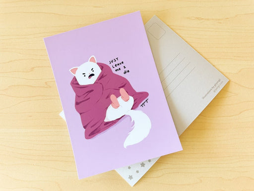 Goyangii$4.00| /Illustration features a cat wrapped in a blanket and wearing cozy socks, asking to be left alone to die. ✿ Thick Matte Vinyl Sticker ✿ Size: 3" x 2...