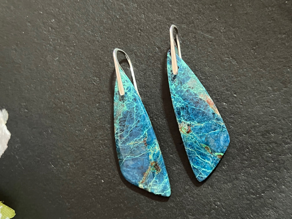 Chrysocolla earrings ,natural stone jewelry, unique one of a kind, blue color earrings,925 sterling silver ear wires