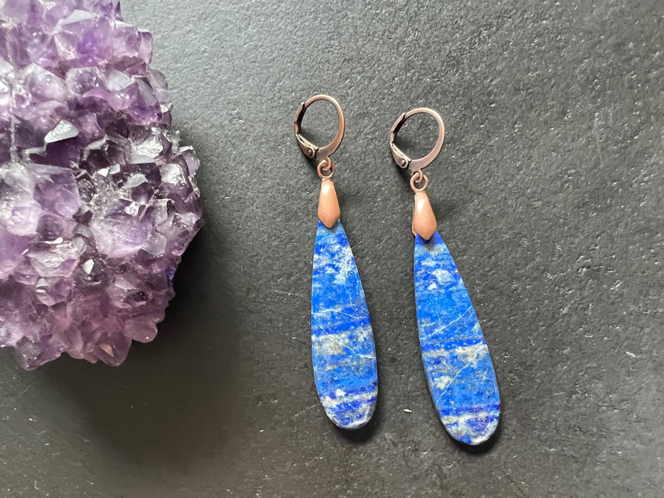 The bead here is lapis lazuli accented with choice of ear wires you want. All ear wires I provide is nickel and lead free.