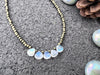 ~ with gemstone moonstone. They together give a bright contrast and lights up your attire. They are suspended with seed beads throughout the strand of the necklace . The focal here is a rainbow flashy little moonstone briolettes.