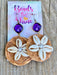 This earring consists purple quartz paired with rafia grass detailed with cowrie shells. The total length of the earrings is around 2.5 inches from the ear .