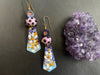 This earring is about 2 inches long. Inspired by nature the beads are made of glass and enamel . Czech glass beads are added here to give the boho glam touch. The focal here is a handmade lampwork bead and a floral oval shaped enamel bead.