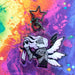 This acrylic keychain is 2.5 inches (6.3 cm) on the longest side, double-sided with the same print on both sides; it has a gold star clasp.