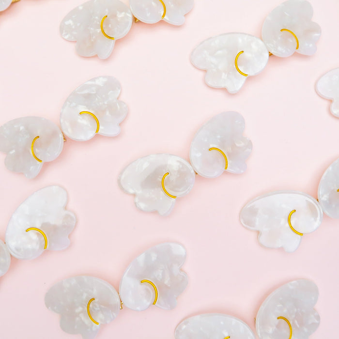 A hair clip set of heavenly angel wings. You'll feel as if you could fly with these angelic accents pieces.