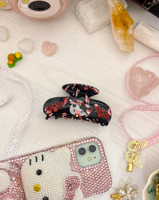 "Playful and practical, these claw clips are a must-have for any hairdo. Made of biodegradable acetate and adorned with tiny stones, they're both eco-friendly and stylish. Perfect for all-day wear, this clip adds a touch of sweetness to any hairstyle. Try it with a low bun or half-up-half-down look!"