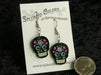 Celebrate Dia De Los Muertos with these colorful 3/4-inch calavera earrings! Laser-etched black acrylic is hand-painted with "cold enamel" in different color combinations. The earwires are USA-made surgical stainless and may have gold-plated accents as shown.