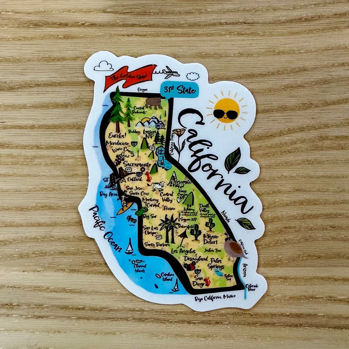 Click to expand Tap to zoom California State Map Vinyl Sticker by Gooseberry Designs Sold out $5.00 | / 1 2 3 4 5 6 7 8 9 10+ Quantity Quantity Sold out Vinyl sticker with hand drawn illustration. Waterproof and measures about 3 inches in diameter