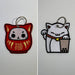 - Maneki Boba and Darumeow are 8.5cm x 8.5cm