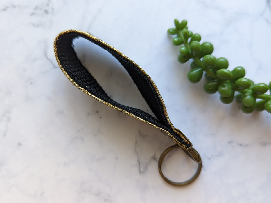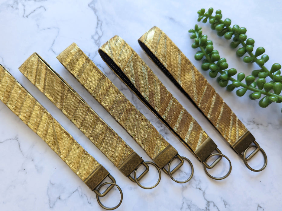 Gold Zebra Pattern,0.8" Slim Wristet, Key Fob made out of Japanese Silk Obi Fabric,Keychain Wristlet, Silk Kimono Key Fob, Lanyards for Key Strap Keychain, Wrist Lanyard, New Car Gift