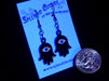 I can't guarantee these will ward off the evil eye, but if your grandmother says so, these should do the job. Black laser-cut acrylic with hand-painted glow accents, 1-inch high. Choose from a blue "evil eye" with black Swarovski pupil or a cheerful red heart. USA-made surgical stainless earwires.
