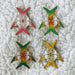 The pin is 1.7 inches (4.5 cm) long. It has two pinbacks with rubber clutches. It is gold plated with hard enamel. Heart Seraphim is available in rainbow, yellow, or rainbow glitter.