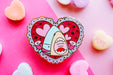A ferocious beast with hearts and sparkles! This pin features a shark among flowers and lots of glitter!