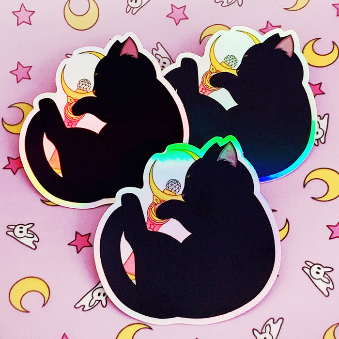 These sailor moon decals have a holographic glossy finish with an iridescence shine. They're perfect for indoor or outdoor use and have a protective laminate and are durable, waterproof, and resistant to sunlight. Size: 3" x 3"