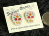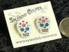 Celebrate Dia De Los Muertos with these colorful 5/8-inch calavera stud earrings! Laser-etched white pearlescent acrylic is hand-painted with "cold enamel" in different color combinations. The posts are USA-made surgical stainless.