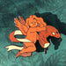 The pin is about 2.5 inches (6.3 cm) wide. It is black nickel plated with hard enamel, two pin posts with rubber backings, and screenprint.