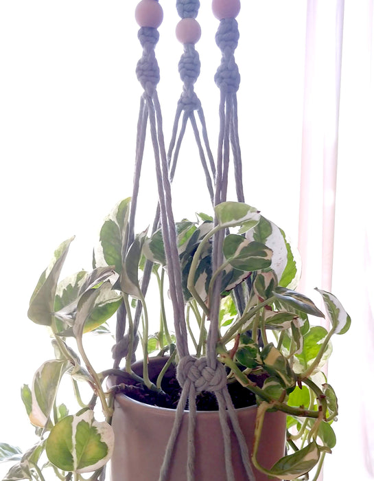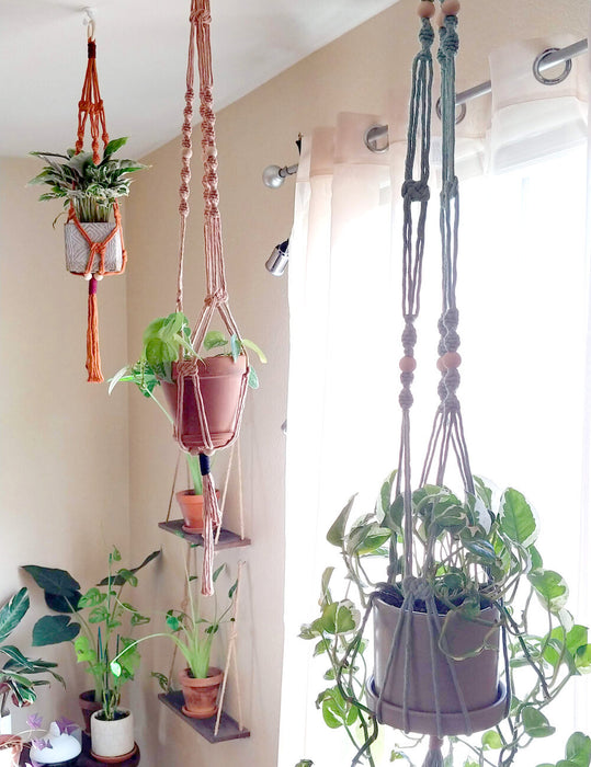 The Pickett plant hanger is here to both maximize your vertical space and give your beloved plants the light that they need! Handmade with love, each hanger features intricately coin and spiral knots with high-quality 4mm single strand cords made of 100% cotton recycled from the garment industry. The design is complimented by a natural wooden ring and beads made of birch and maple. Pickett is available in different sizes to fit your window space. If you'd like to commission a custom color, check out the "Made to Order" listing! If you're looking to hang 2 plants with one hanger to really maximize your space, check out the "Double Pickett"!